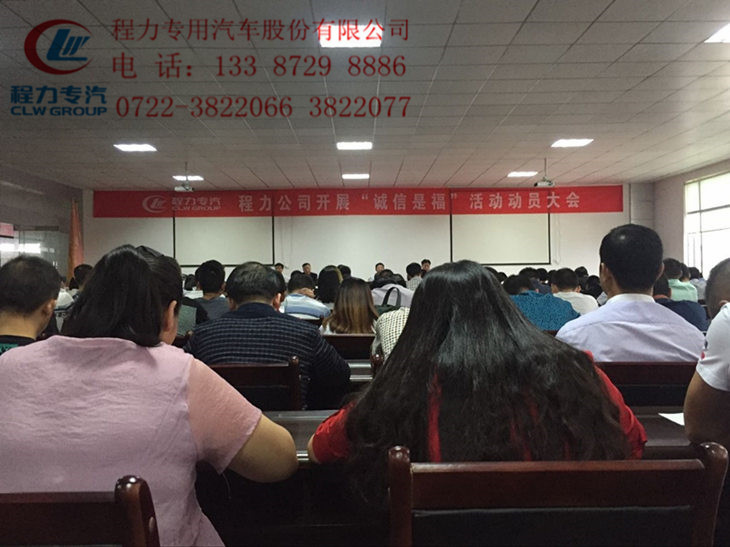 下午3點,程力集團“誠信是福”活動的動員大會在程力專用汽車股份有限公司大會議室召開,集團公司董事長、總經理及各位常務副總均出席了大會。